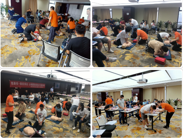 7月13日至15日,心唤醒在浙江石化、滨江消防、海创园等单位进行了5场救护普及培训。单浙江石化就开展了3场,参训人数过百人,且每位到场学习的小伙伴都至少实操了两遍以上。